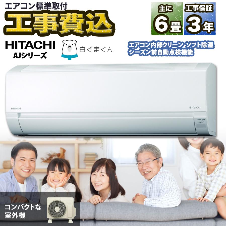 | 商品の特徴 | 日立(HITACHI) エアコン 6畳用 工事費込 冷暖房 白くまくん。白くまくん エアコン 日立 RAS-AJ22R (W) 6畳 基本 取り付け 工事込み。白くまくん エアコン 日立 RAS-AJ22R (W) 6畳 基本 取り付け 工事込み。【対象エリア限定販売】- 兵庫県:神戸市西区、明石市、加古川市、高砂市、三木市、小野市、加西市、加東市、西脇市、播磨町、稲美町※全て税込価格です【商品情報】- 日立 6畳用(2.2kW)エアコン室内機、室外機本体- 型番:RAS-AJ22R- 年式:2024年モデル- 電源:単相100V(平行型)- フィルター自動お掃除機能:なし- 空気清浄機能:なし- 標準工事込み • 配管4mまで • 室外機は水平な地面orベランダ床置き • 真空引き施工 • テープ巻き仕上げ【追加費用がかかる場合】- 配管延長(4m超過)3,300円/m- 2階〜1階配管立ち下ろし 15,400円- 特殊工事(屋根置き、壁面置きなど)7,700円~- 穴あけ工事(サイディングの場合) 4,400円~- コンセント交換、電圧切替 4,400円- 梯子作業、高所作業 6,600円〜- 古いエアコンの取り外し(引き取り込み) 4,400円- 隠蔽配管、化粧カバー等、その他詳細はご相談ください【保証】- メーカー保証:1年間- 延長保証(オプション):4年延長(4,400円)、9年延長(11,000円)- 工事保証:3年間【付属品】- リモコン:あり- 室内機据付板:あり- 説明書:あり※こちらの商品は新品です。楽天市場】200円引きクーポン配布中!12/26 01:59まで【一部除外エリア。※他でも出品しているため、在庫がなくなる場合があります。スリーアップ ハイブリッド排熱レス スポットエアクーラー DL-T2502WH。#日立のエアコン一覧#6畳用のエアコン一覧#全てのエアコン一覧 | ||