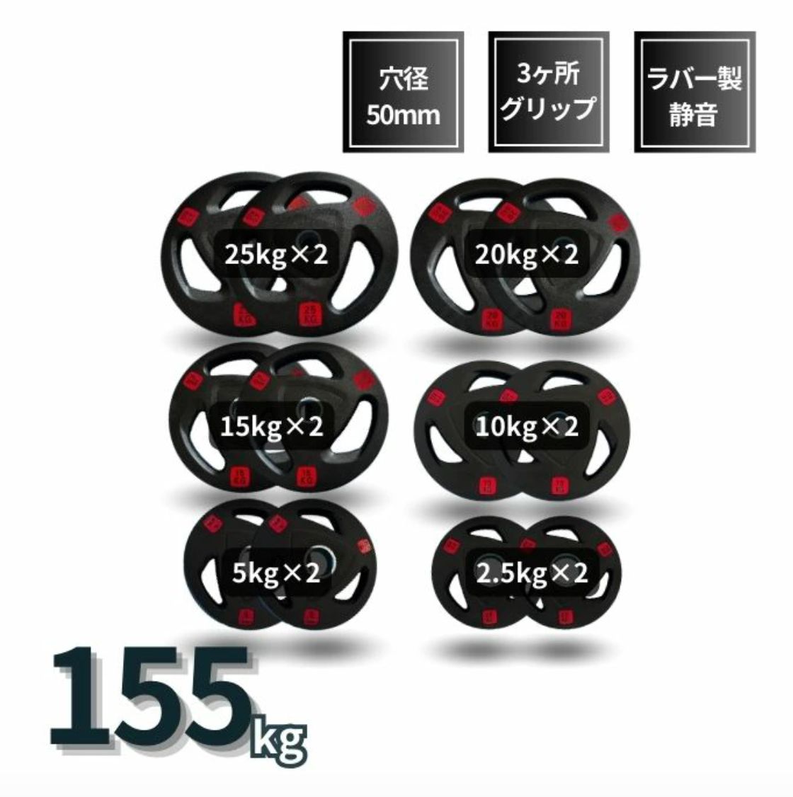 | メーカー | 50mm 3グリップラバープレート 25㎏4枚 |